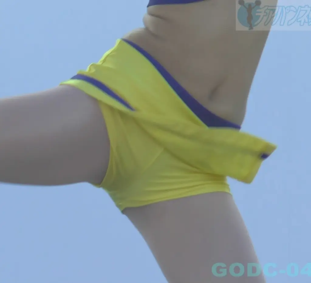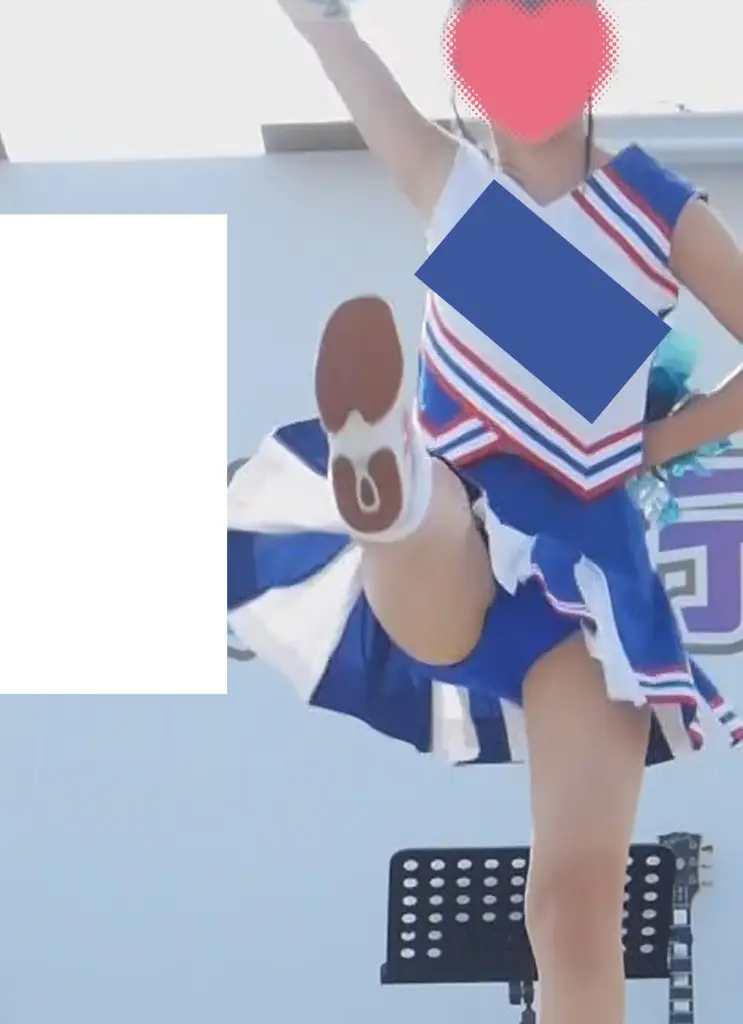 映像はカメラ固定の引き映像で、多くのチア演技を収録。開始いきなりの0分20秒で後ろ向きに大ジャンプしてお尻のアンスコが全開に!