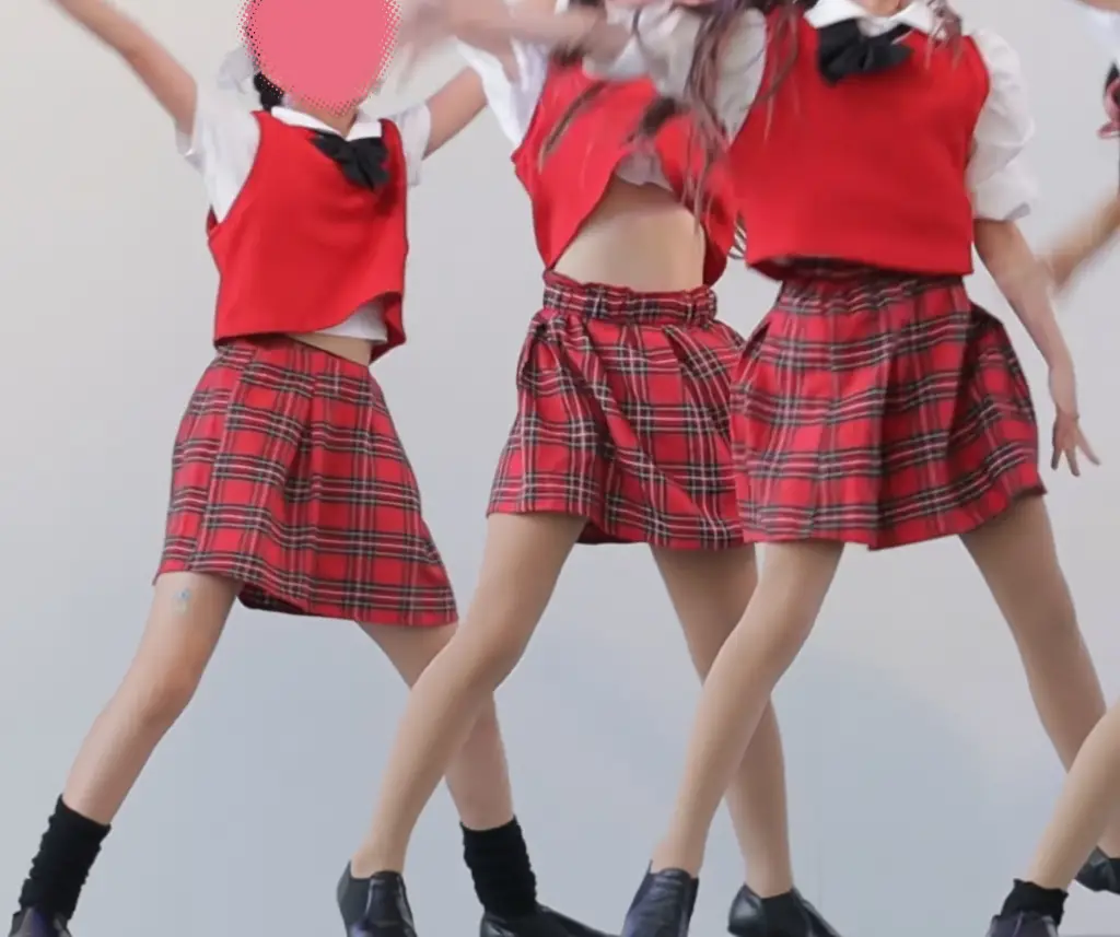欧米風の赤い制服ライク衣装のダンスチーム、サムネイルを見てみると… これはひょっとして穿き忘れ…!?