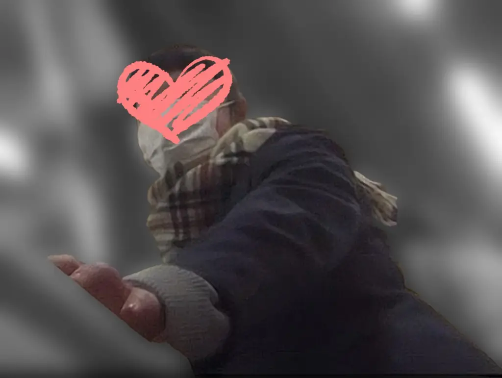 リュックを拾い上げるシーン。