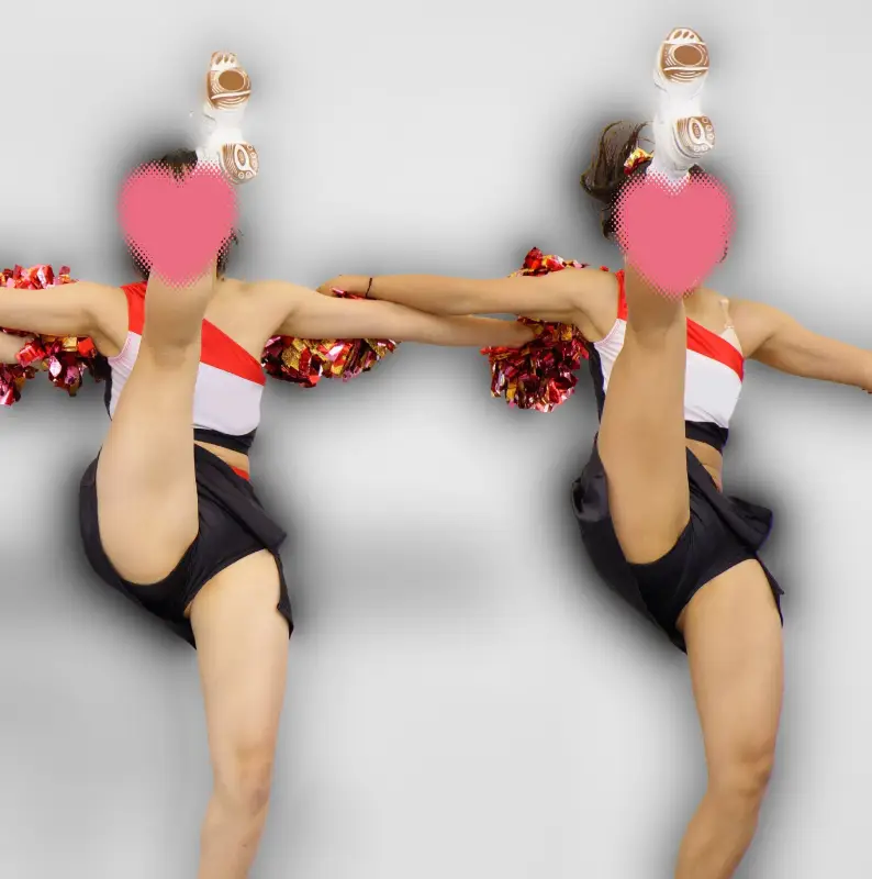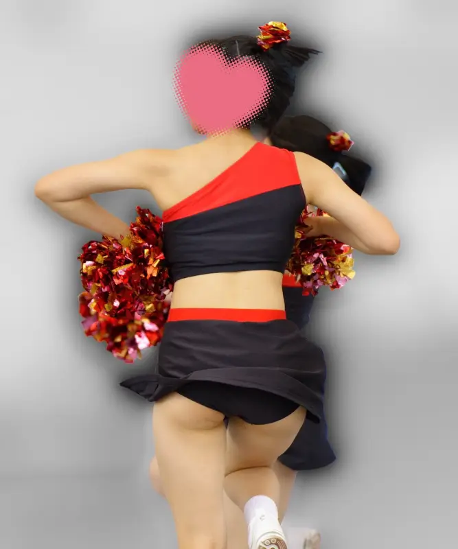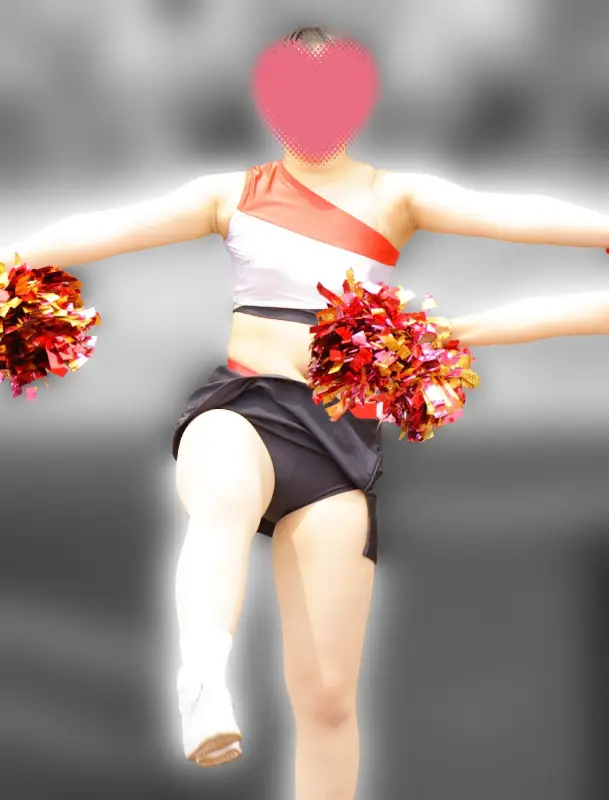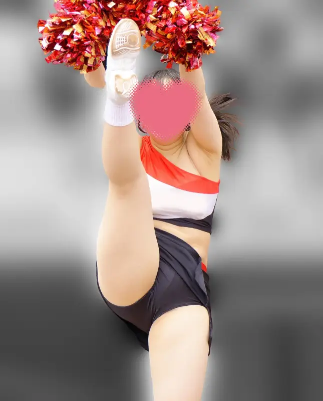 むっちりチア様のみ薄手のナチュストを着用されているようですが、メインのお二人はちゃんと生脚。 ハイキックの脚の上がり方も文句なし!