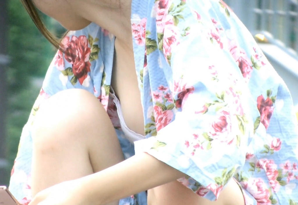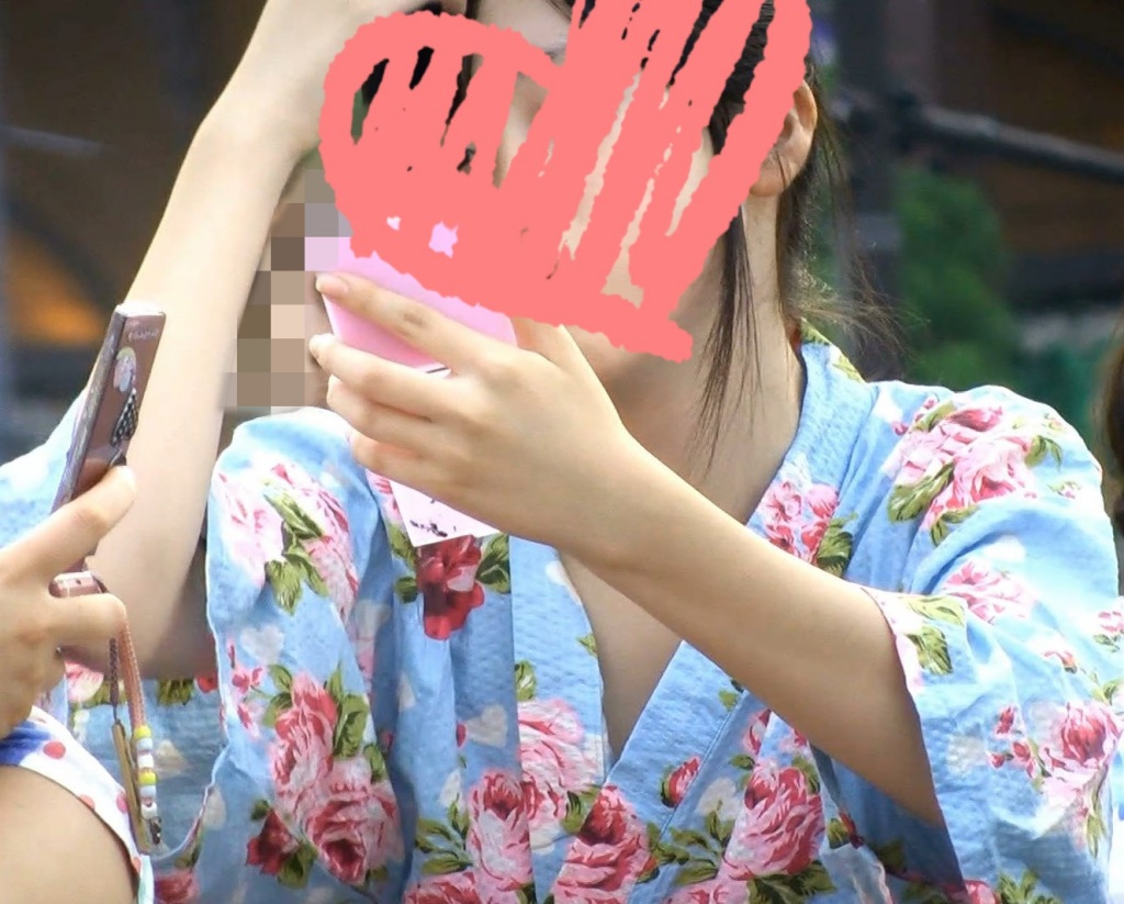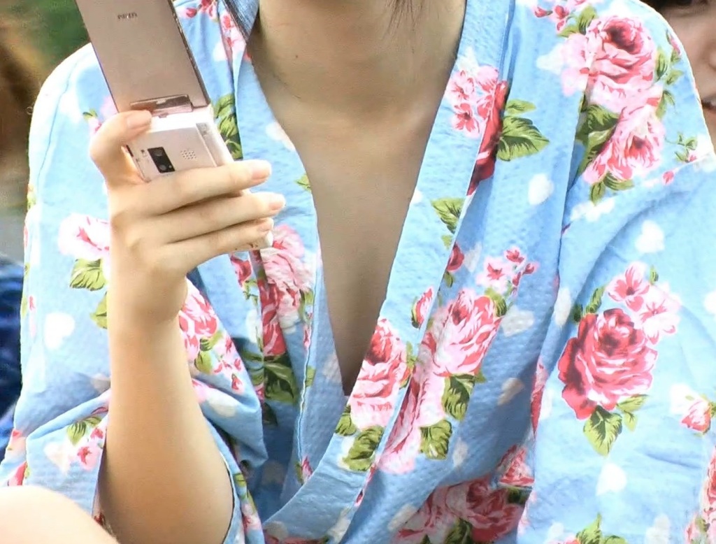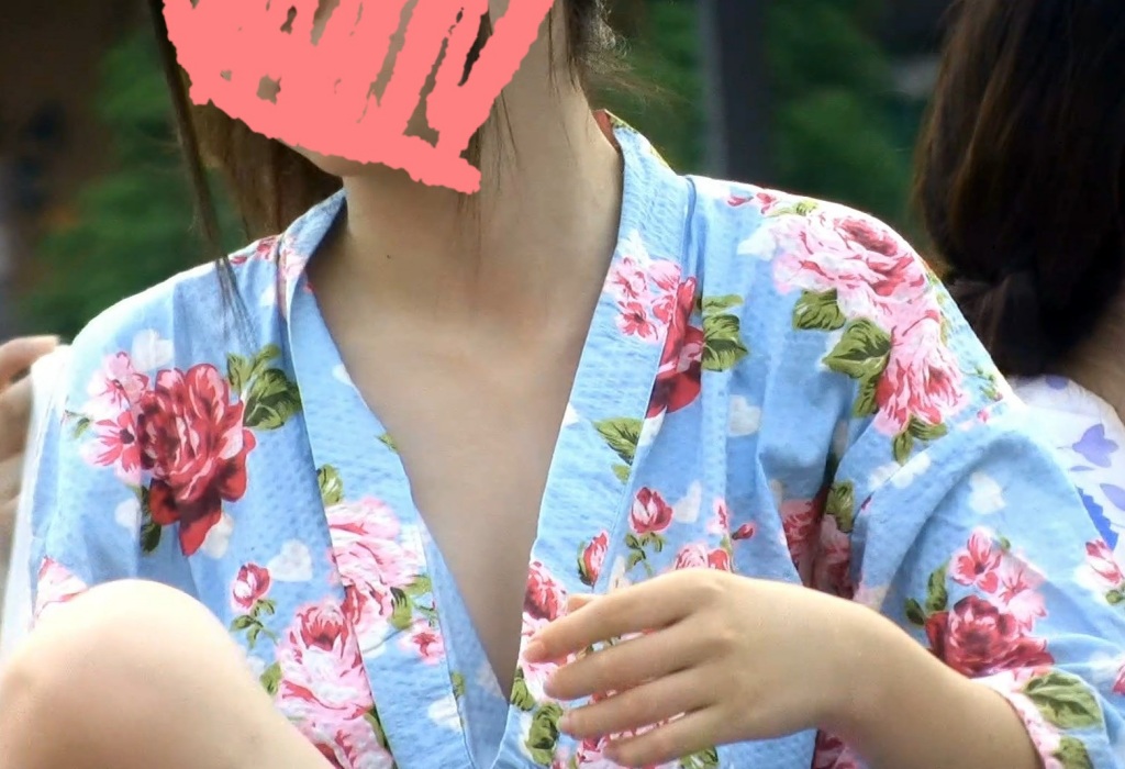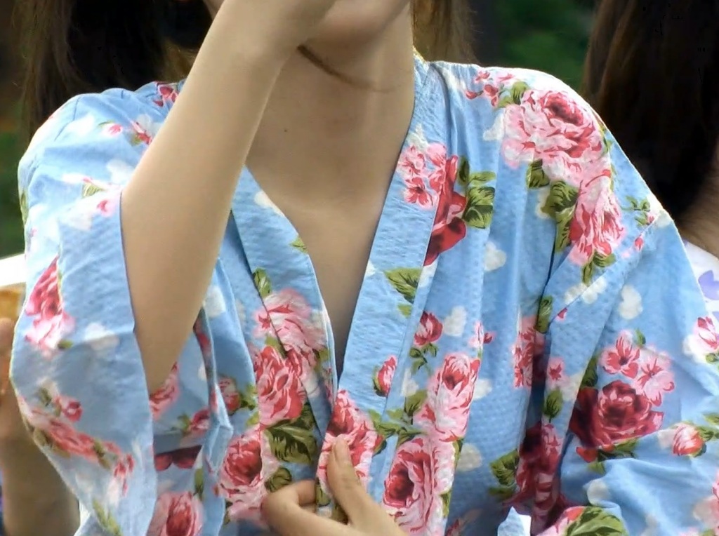 浴衣の胸元からは、白い布地がチラリ(゚A゚;)ゴクリ