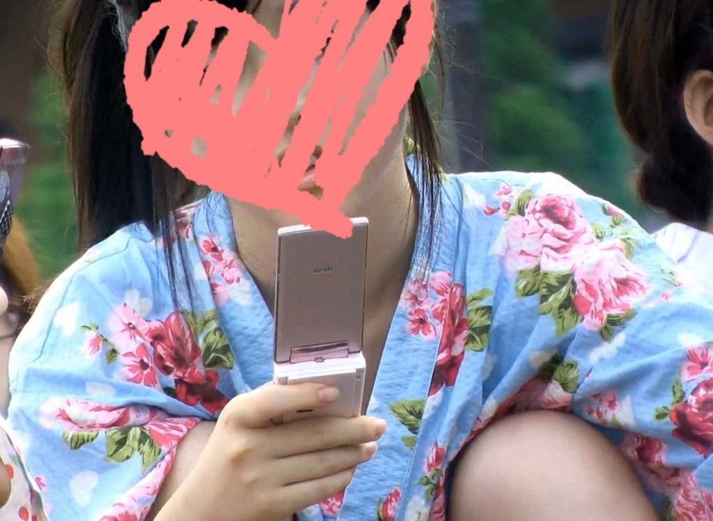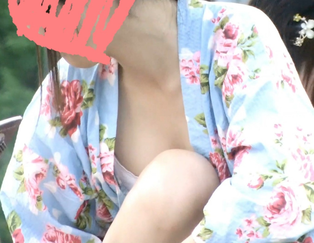 着慣れていない浴衣で友達とはしゃぐので、どんどん胸元が空いて堂々と少女がつけるようなブラを見せてくれます。