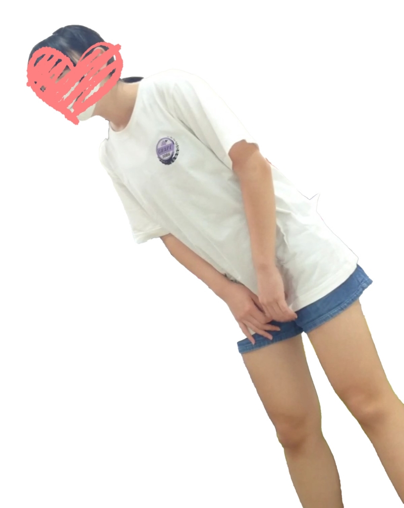 Tシャツにショーパンとラフなスタイルで登場のモデル様は、サムネから受け取ったイメージ通り、いや、それを上回る CUTE で可愛い素朴系女子。