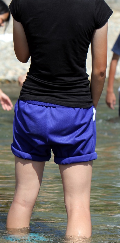 女の子らしく内股で、滑って転ばないようにつま先からそろーっと入水する姿が愛らしい(゚A゚;)ゴクリ