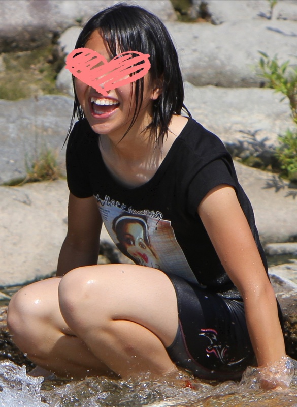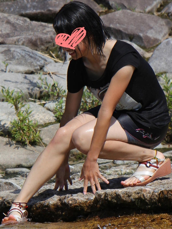 Tシャツにハーパンという”いかにも”な服装で川遊びを楽しんでいる娘。 腰ほっそ(゚A゚;)ゴクリ