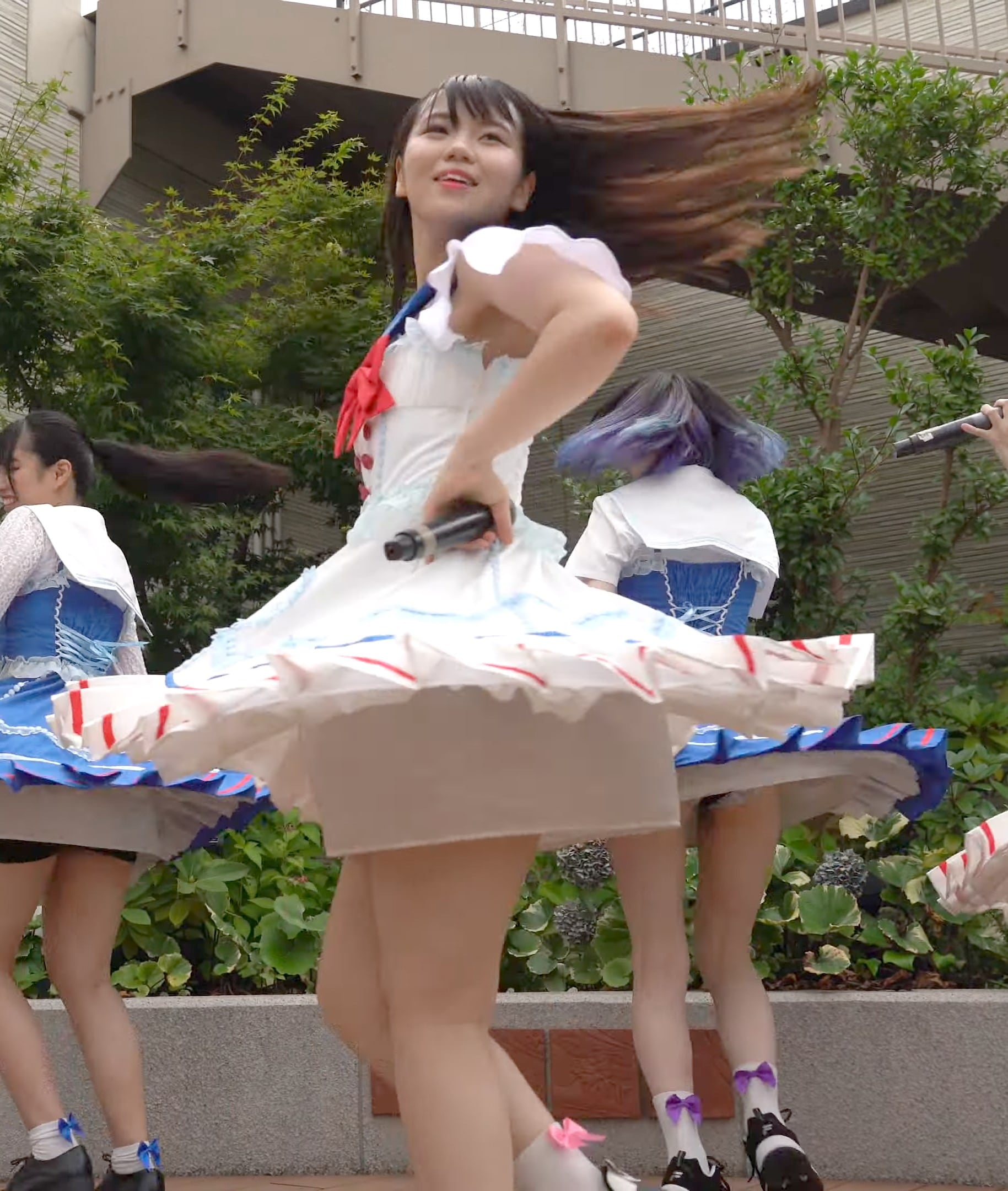 注目は画像センターの毛先が紫色のメンバー。一瞬履き忘れかと思わせるハミパン・・!?
