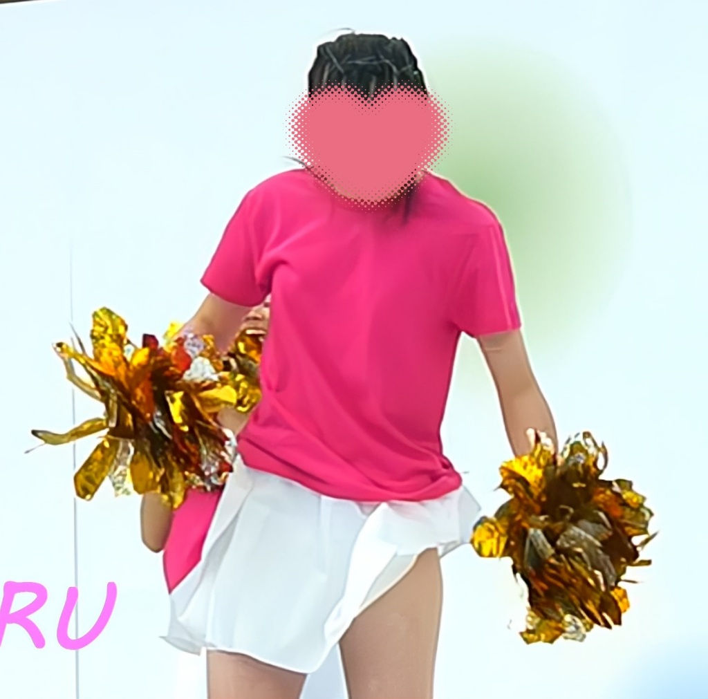 その後カメラが上を向き、メンバーのお顔が見れるシーンがありますが・・・おっと、これはまさかの Kawaii チアチームのようだ。