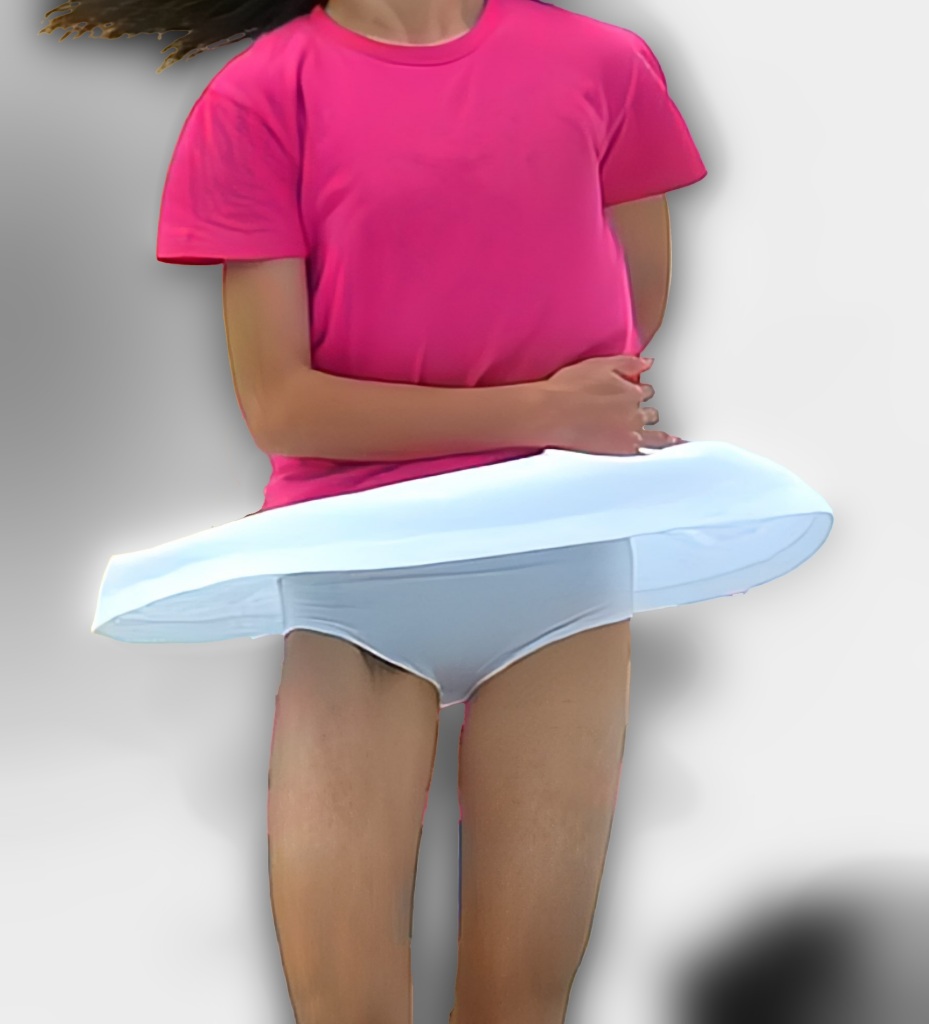 どうせ中身はスパッツかモコモコパンツかと思いきや、何とまさかの純白のアンダースコート!しかも、フリルレース無しの珍しいタイプ!