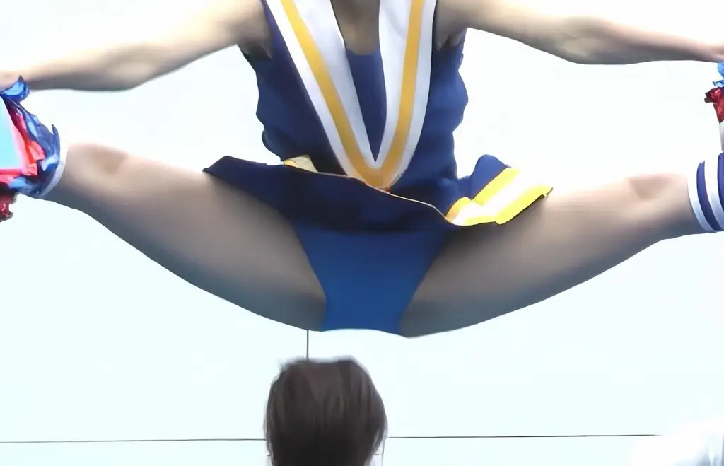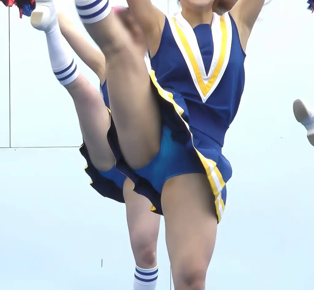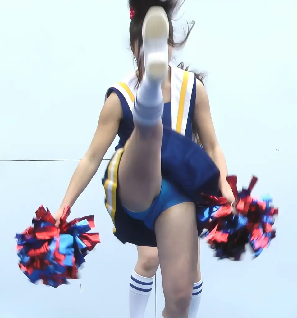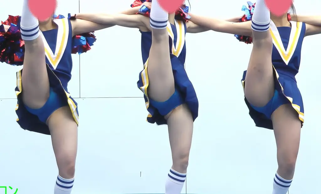 フォーメーションチェンジから、カメラの眼の前にきたチア様の大開脚。