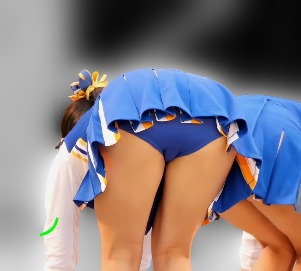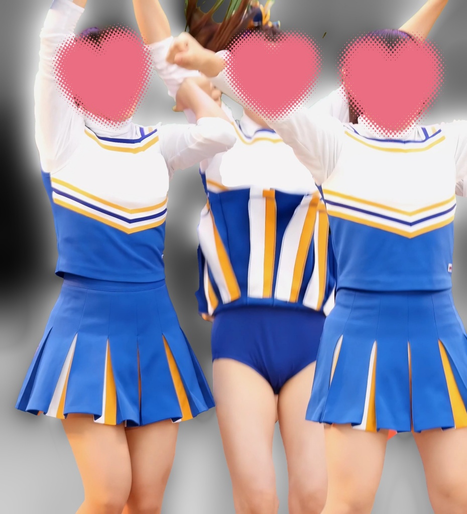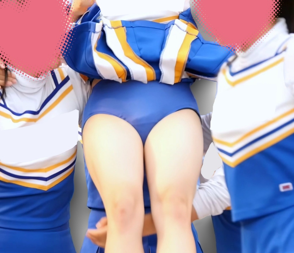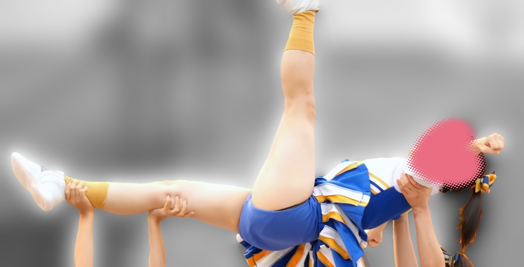 降下時にアンスコを引っ張られてハイレグになってしまうのは、チアリーディングあるある。