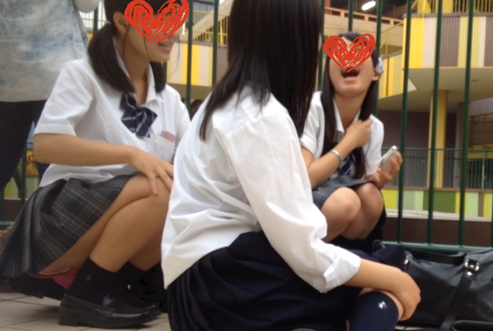 引き続きショッピングセンターの柵越しに、見下ろす形でライブステージを観賞している3人組の制服娘たちがターゲットです。