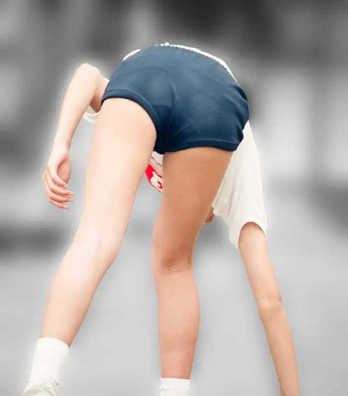 毛玉からブルマの縫い目の質感まで見て取れる鮮明ショット。これはかなり至近距離から撮影されているのではないでしょうか。