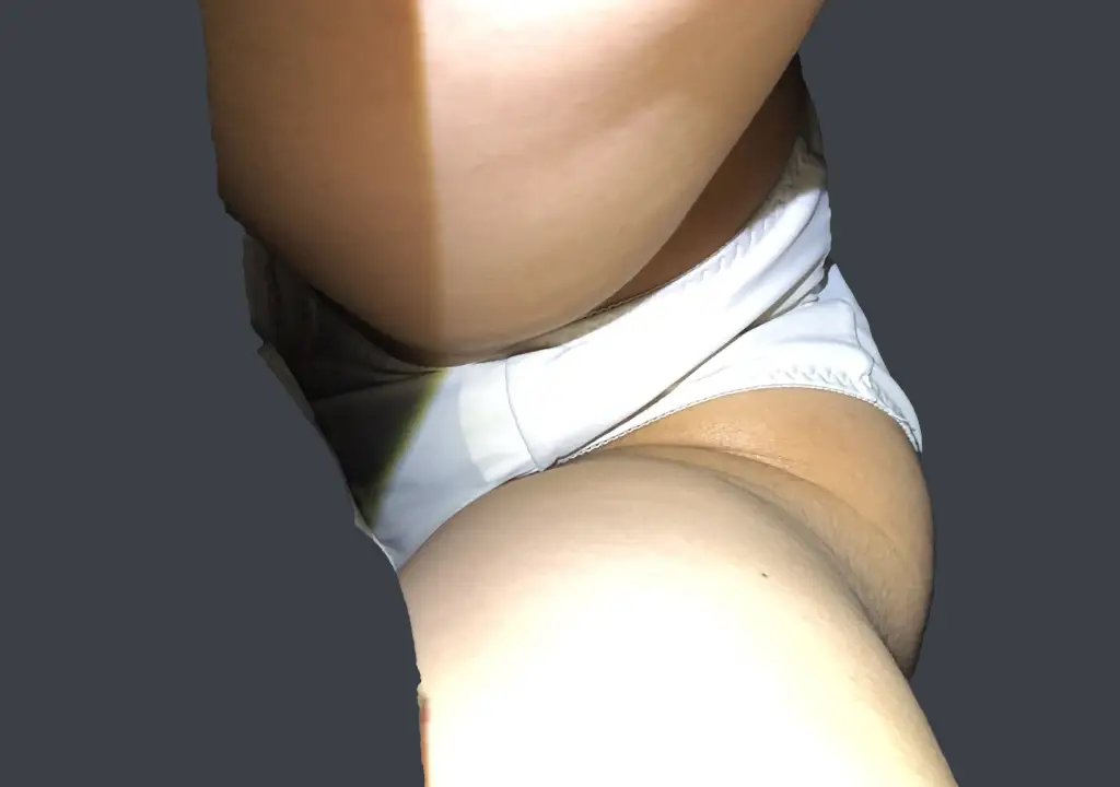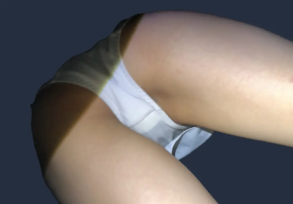 太ももから尻にかけての肌の質感が極めてフレッシュなモデル様。