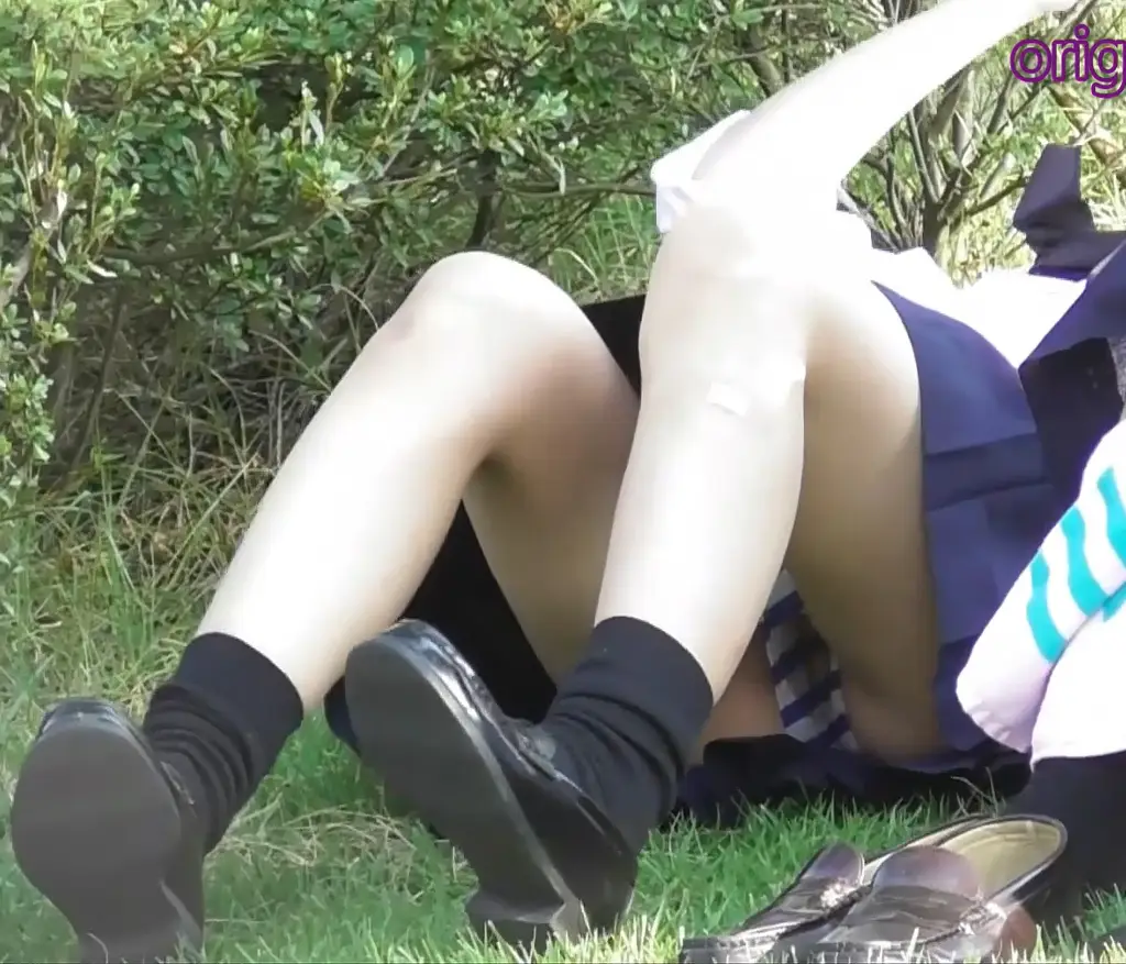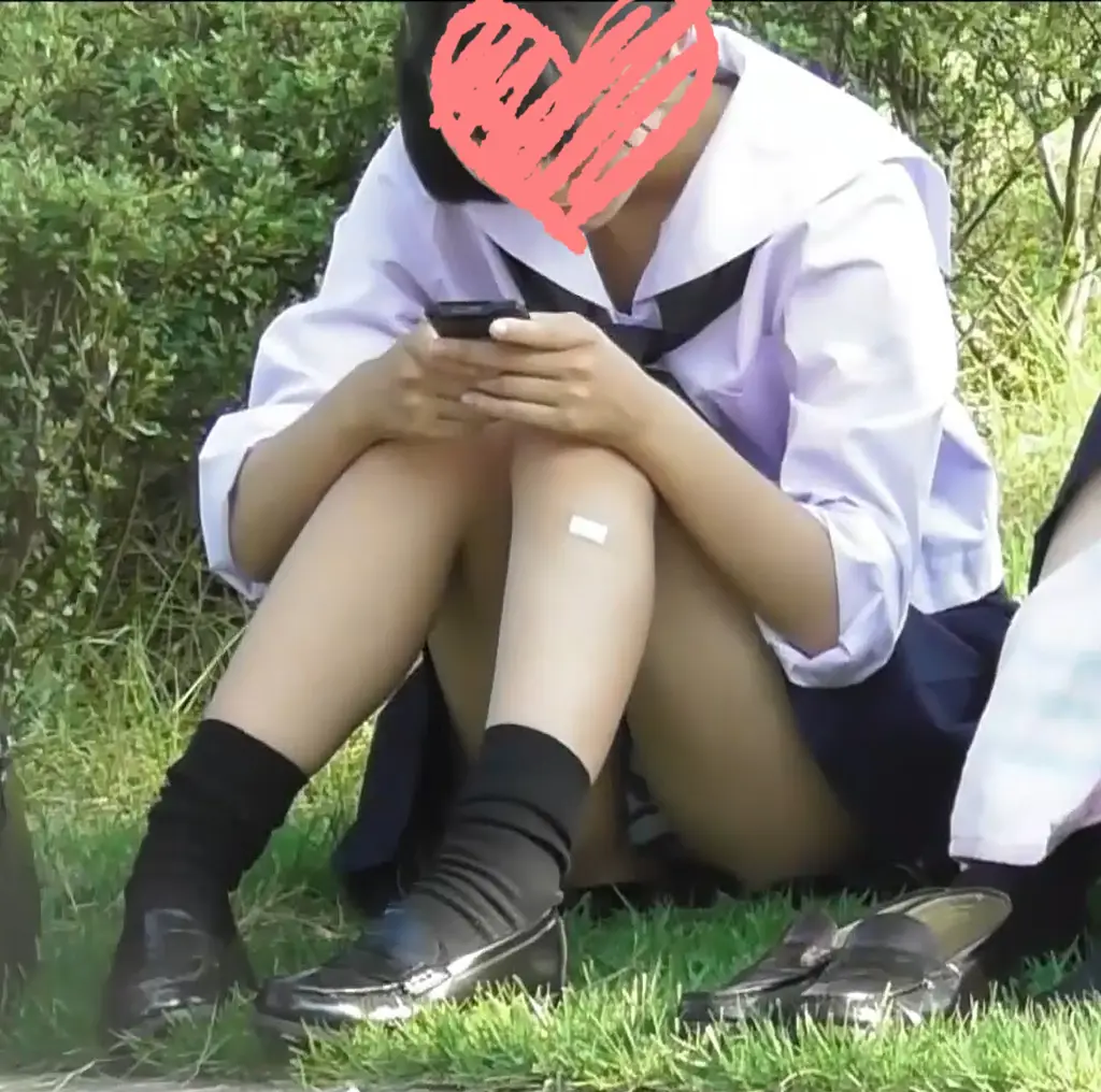 さて冒頭は、原っぱでリラックス中の制服フレンズの足元の撮影から。