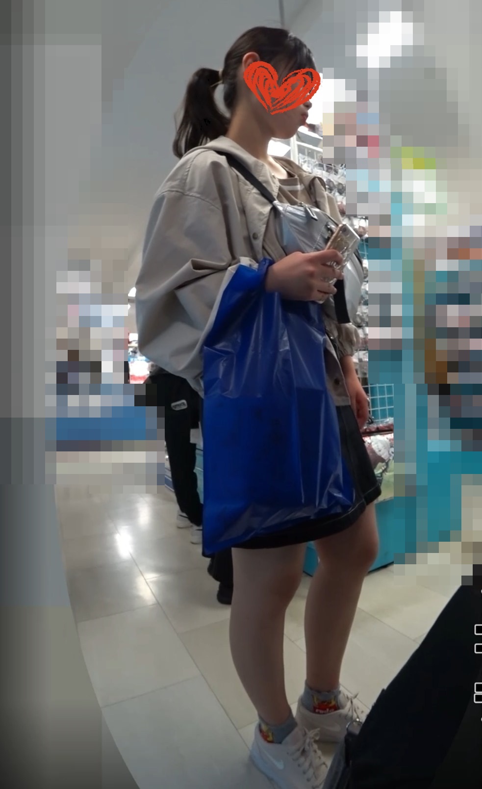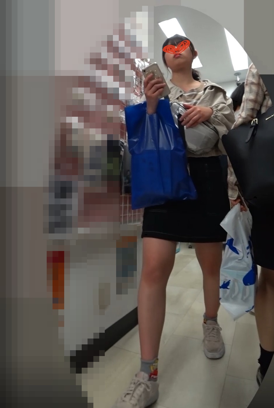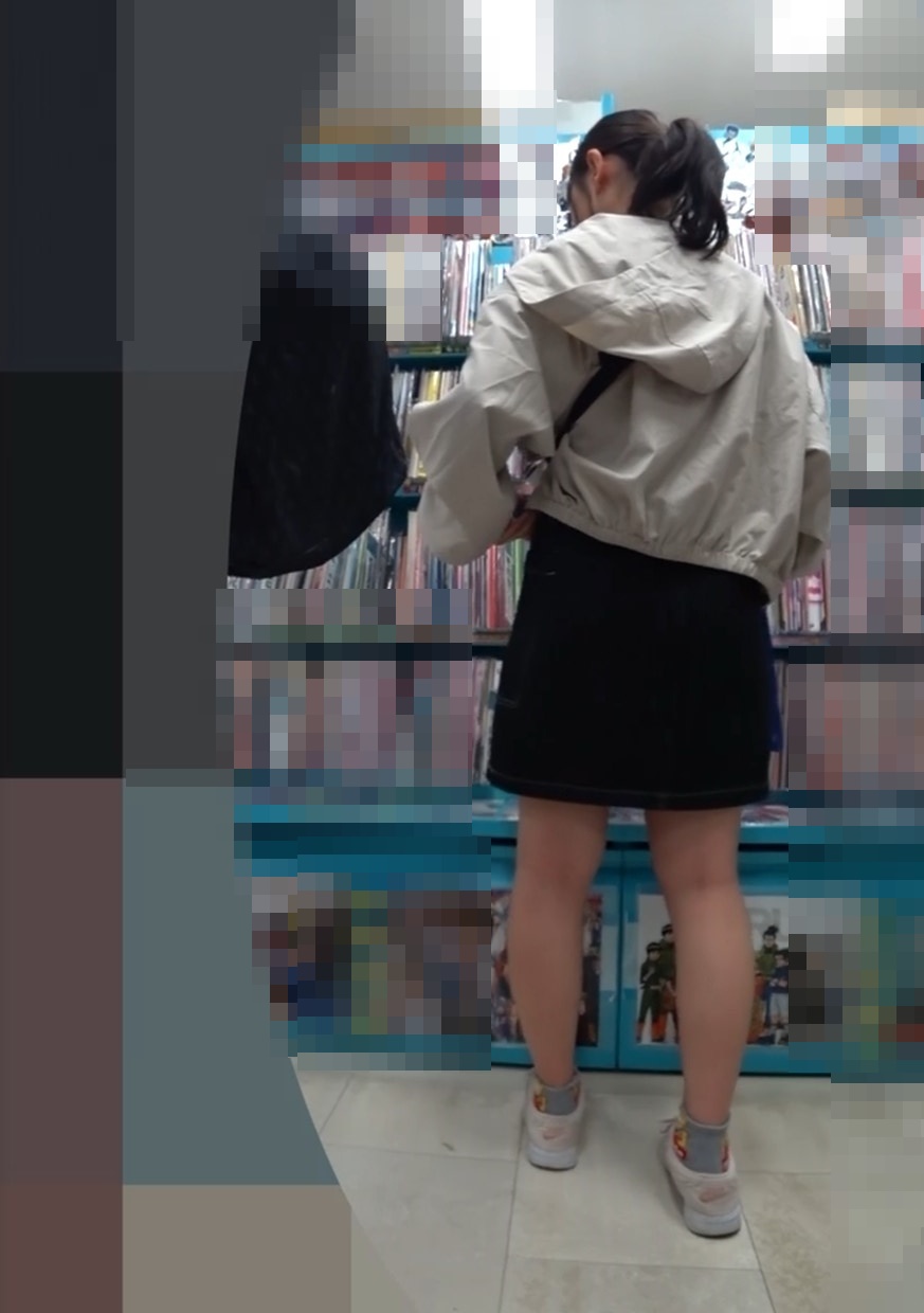 モデルさんが棚に向かって前屈みになったところで、素早くスカートの下にカメラを滑り込ませてのファーストコンタクト!