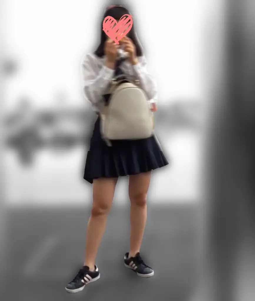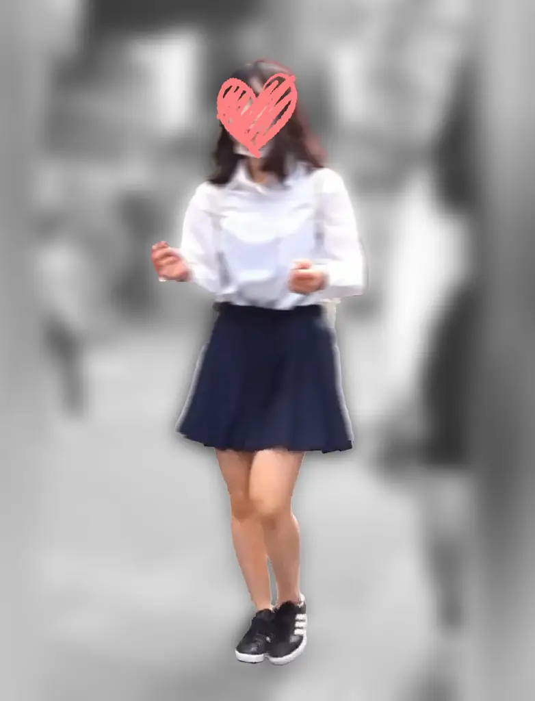 スカートの半分から上ぐらいから薄ぼかしがかかった状態での所感は、いい意味でどこにでもいそう感の普通に可愛いモデル様。