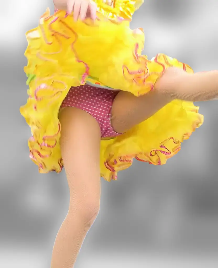 めくれにくい形状のふわふわスカートのわりには、ようやっとる。