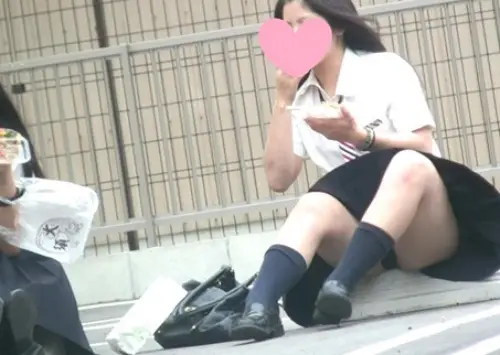2つ目は2人のJKが座って露天の食事をしていました。